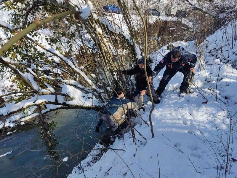 Dereye düşen köpeğini kurtarmak isterken boğulma tehlikesi geçirdi
