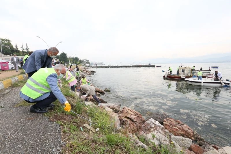 Marmara Denizinde deniz salyası ile mücadele kapsamında Derince Kaymakamı Cemil Aksak ve Derince Belediye Başkanı Zeki Aygün’ün katılımıyla sahilde çevre etkinliği düzenlendi.