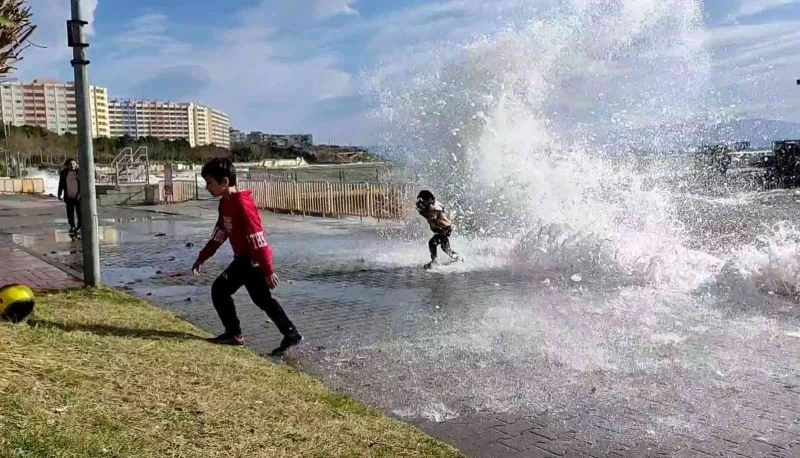 Yalova’da lodosun etkisiyle denizde oluşan dev dalgalar sahilde yürüyüş yapanları ıslattı. Sahilde yürüyüş yaparken ıslanan vatandaşlar ne yapacağını şaşırdı.