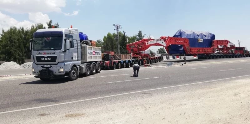 Şanlıurfa’da imal edilen ve yurt dışına götürmek için İskenderun Limanına doğru yola çıkan dev trafoyu taşımak günler sürüyor. Dev trafoyu taşıyan araç Adıyaman’dan geçti.