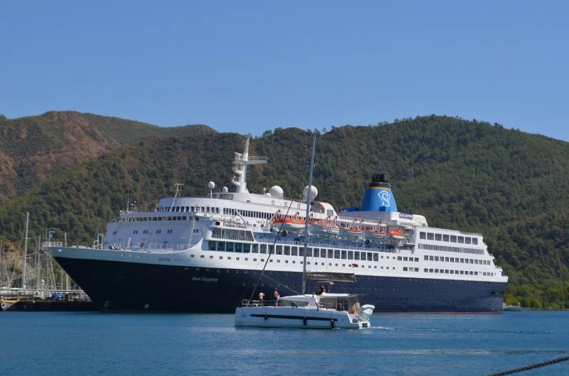 200 metre uzunluğunda, 29 metre genişliğindeki Bahama bayraklı ’Blue Sapphire’ adlı transatlantik lüks gemi, 218 yolcusuyla Muğla’nın Marmaris ilçesine demir attı.