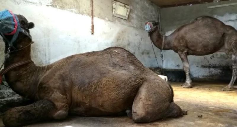 Denizli’de, deve güreşleri sezonun salgın sebebiyle kapanınca barınaklara alınan develer, yazlık bakıma alınarak parazitlere karşı yağlandı.