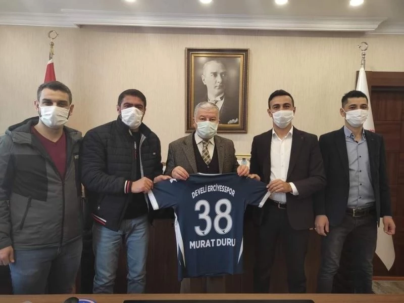 Kulüp Başkanı Yılmaz Özalp yaptığı açıklamada; Bugün de yönetimde bulunan arkadaşlarımız ile Develi Kaymakamımız Sayın Murat DURU’yu ziyaret ederek, kendisine takımımızın formasını takdim ettik. Kendisinin hem futbola hem de diğer spor dallarına olan ilgisini biliyoruz. Bizlere her anlamda destek olacağını belirten Develi Sevdalısı olan ve bizden biri olan Kaymakamımız Sayın Murat DURU’ya Develi Erciyes Spor Kulübü olarak teşekkür ederiz" dedi.