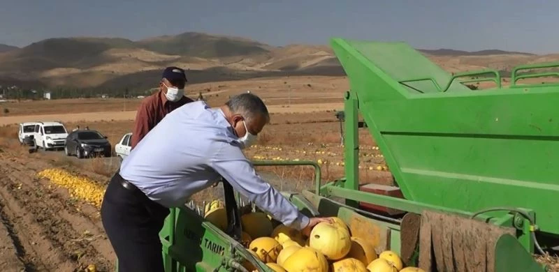 Ekim ayında kabak hasadına başlayan çiftçileri ziyaret eden Develi Kaymakamı Murat Duru çiftçilere kolaylık dilerken aynı zamanda kabak hasadına kendisi de yardım etti.