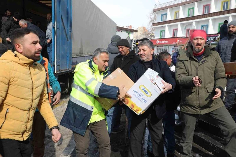 Develi Kaymakamlığı ve Develi Belediyesi iş birliği ile Çarşı Camii altında toplanan 6 tır ve 4 yardım kamyonu daha yola çıktı.