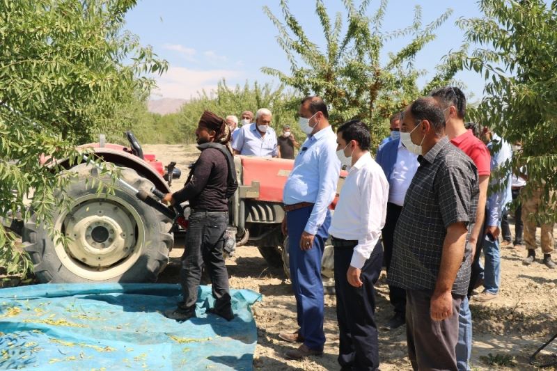 Baskil deyince akla kayısı geldiğini aktaran İl Tarım ve Orman Müdürü Turan Karahan, “Bu bizim en önemli değerimiz ve stratejik ürünümüz. Dolasıyla bizler Baskil kayısısının sadece Türkiye piyasasında değil dünya piyasasında yer alabilmesi için paydaşlarımızla birlikte ciddi çalışmalar yürütüyoruz. Ancak bir bölgede tek ürünle yürümek her zaman avantajlı sayılmıyor. Baskil ürün çeşitliliğin zenginleştirmek ve üreticilerimizin yıl içerisinde daha fazla kazanç elde etmelerini sağlamak için değişik ürünlerle ilgili çalışmalar var. Bunlardan bir tanesi de bademdir. Şu anki badem fidanları 4 yaşında olmasına rağmen gerçekten verime yatmış bu sene ciddi bir rekolte ile hasat bekliyoruz. Bölgenin özellikle sahil kısmında küçük aile işletmelerine yönelik ikliminde uygun olmasından dolayı seracılığın geliştirilmesi üst bölgelerde badem ve ceviz alanında gelişmelerin kat edilmesi için gayret içerisinde olacağız. Bugün buradaki badem hasadını ilk olarak gerçekleştiriyoruz” ifadelerini kullandı.
