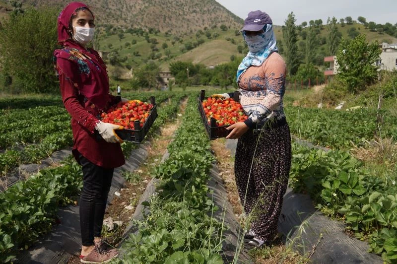 Güneydoğu Anadolu Bölgesinin çilek üretim merkezi haline gelen Batman’ın Sason ilçesinde devletin sağladığı yüzde 80 hibeyle ekilen çilek tarlaları, kadınlara ekmek kapısı oldu.