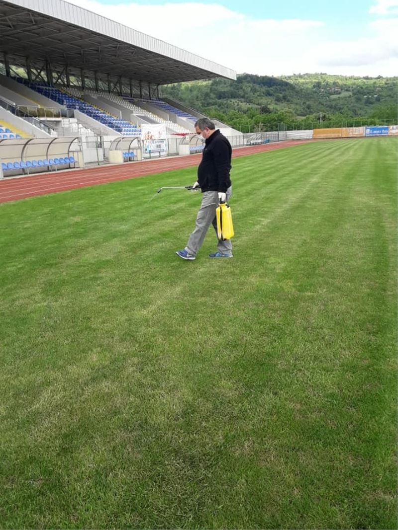 Korona virüs nedeniyle verilen arada bakıma alınan Devrek İlçe Stadyumu ilaçlandı.