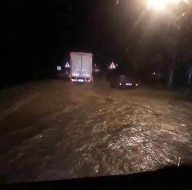 Zonguldak’ın Devrek ilçesinde yağan şiddetli yağmur nedeniyle dereler taştı, vatandaşlar araçları ile yolda büyük mücadele verdi.