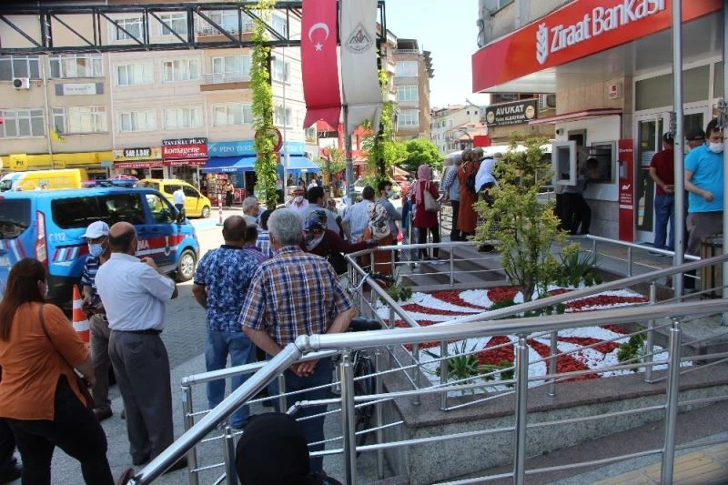 Zonguldak’ın Devrek ilçesinde ki bankalarda işlem yapmak için sıra bekleyen vatandaşlar mesafe kurallarını hiçe sayarak işlem sıralarının kendilerine gelmesini beklediler.
