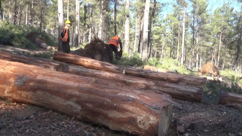 Ormanda devrilen veya kırılan ağaçlar, orman köylülerince ve ekipler tarafından çürüyüp diğer ağaçlara zarar vermemesi için 3-6 metre boylarında kesilip işlendikten sonra Orman İşletmesine ait satış deposuna götürülüyor. Burada istiflenen ağaçlar, ihale usulüyle satışa sunulacak.