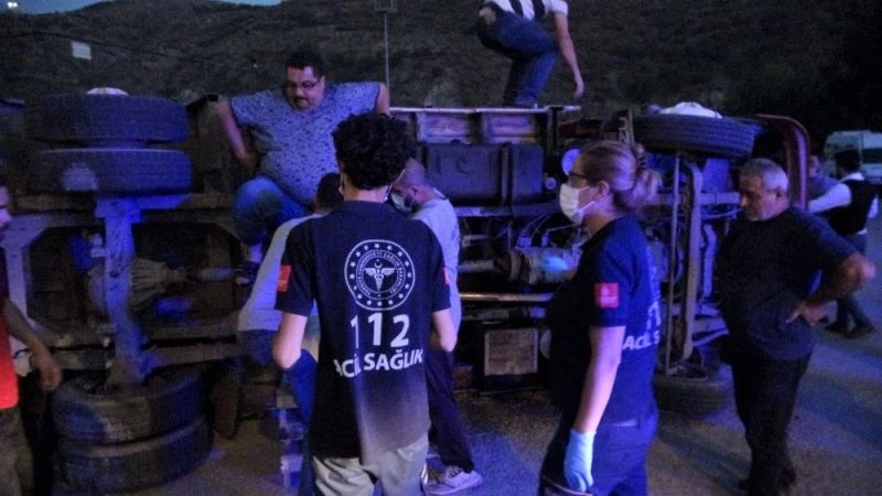 Edinilen bilgiye göre kaza, Tokat-Niksar karayolunda yol yapım çalışmaları nedeni ile ulaşımın tek şeritten sağlandığı yolda meydan geldi. Kadir Y. (50) idaresindeki 60 DB 517 plakalı pikap galerciler sitesine dönüş yapan Hüseyin Ş. (38) idaresindeki 60 AY 986 plakalı kamyonete yandan çarptı. Çarpmanın etkisi ile domates yüklü kamyonet şarampole devrildi. Kamyonette bulunanların yardımına vatandaşlar koştu. Yan yatan araçtan çıkan 3 kişi ile pikap sürücüsü kazayı yara almadan atlattı. Sağlık görevlileri tarafından kontrolden geçirilen şahıslar hastaneye gitmek istemedi. Olay yerinde inceleme yapan trafik polisleri 38 metre fren izi ölçtü. Kadir Y, önüne çıkan kamyonete frene basmasına duramayarak çarptığını kaydetti. Polis ekipleri kazayla ilgili inceleme başlattı.