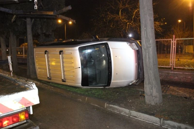 Kocaeli’nin İzmit ilçesinde kontrolden çıkarak yol kenarına devrilen hafif ticari araç, ağaçlara çarparak durabildi. Kazada sürücü yara almadan kurtuldu.