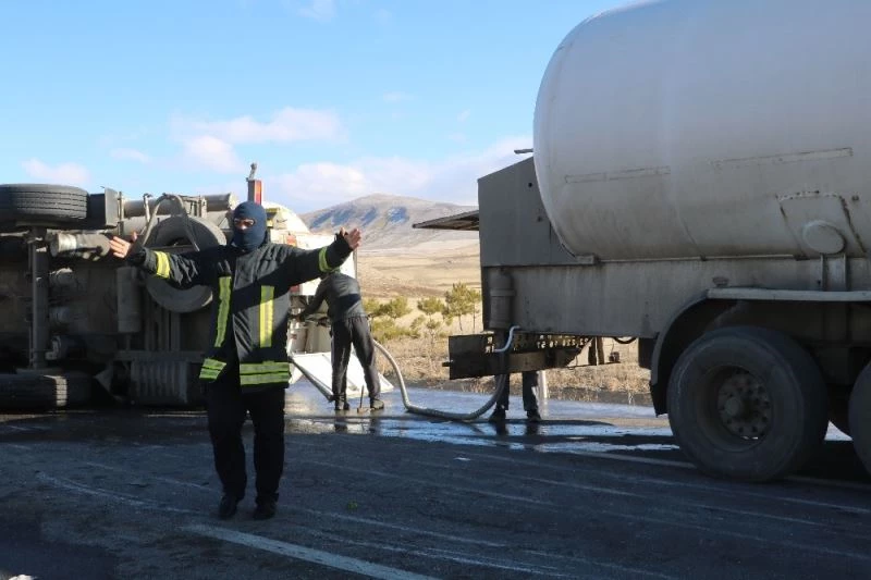Sivas’ta devrilen oksijen yüklü tanker Sivas-Kayseri karayolunu araç ulaşımına kapadı, devrilen tankerdeki gazın başka bir tankere nakli tamamlanınca yol yeniden trafiğe açılacak.