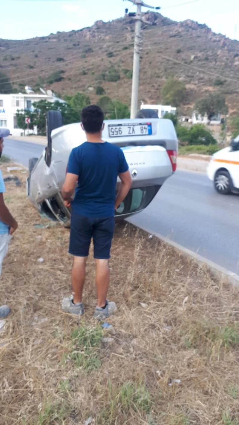 Muğla’nın Bodrum ilçesinde sürücüsünün direksiyon hakimiyetini kaybettiği otomobil devrilirken, kazada sürücü yara almadan kurtuldu.