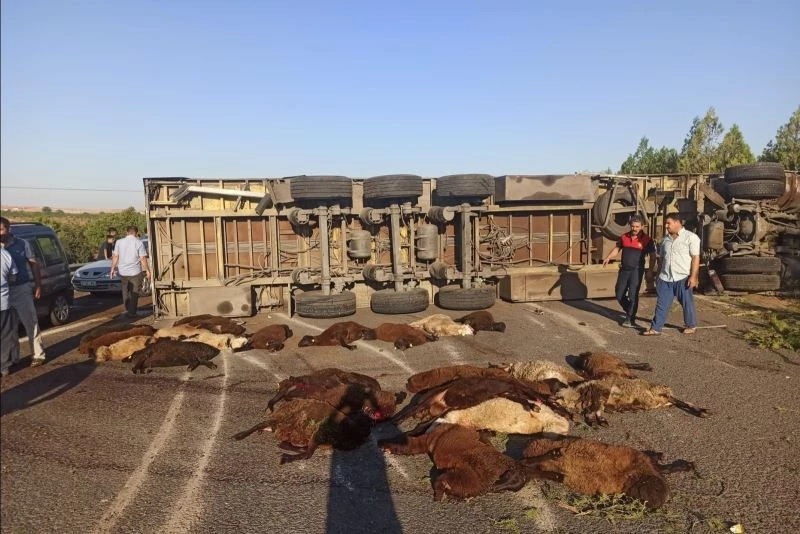 Şanlıurfa’da devrilen tırdaki 42 küçükbaş hayvan telef oldu.