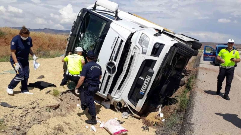 Kırıkkale’de kontrolden çıkarak şarampole devrilen tırın kupasında sıkışan sürücü, olay yerinde hayatını kaybetti.