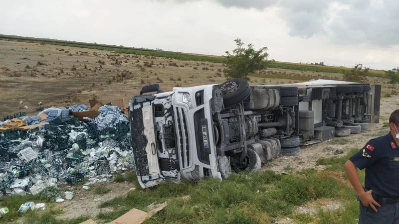 Konya’nın Ereğli ilçesinde sürücüsünün direksiyon hakimiyetini kaybetmesi sonrası devrilen tırın sürücüsü yaralandı.