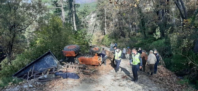 Muğla’nın Seydikemer ilçesinde devrilen odun yüklü traktörün altında kalan baba ve oğlu hayatını kaybetti.