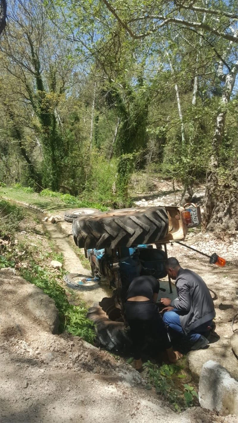 Devrilen traktörün altında kalmaktan son anda kurtuldu