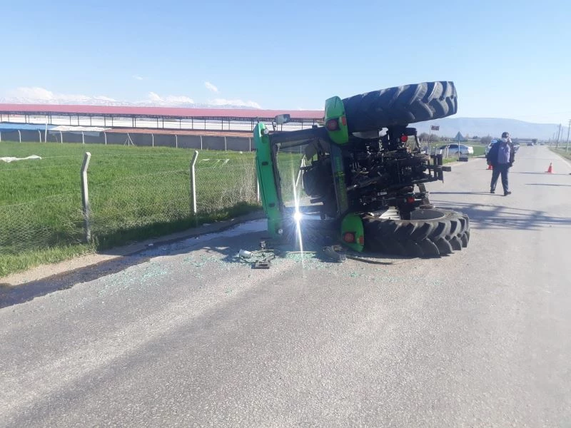 Konya’nın Ereğli ilçesinde meydana gelen trafik kazasında devrilen traktörün sürücüsü yaralandı.