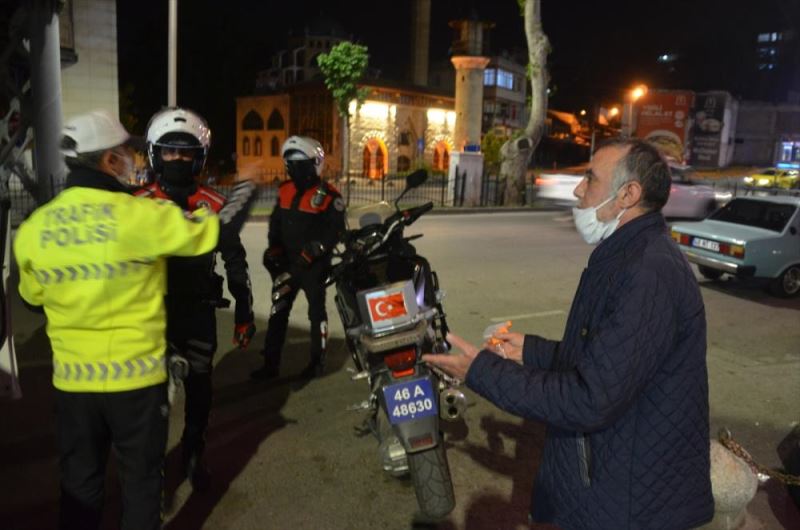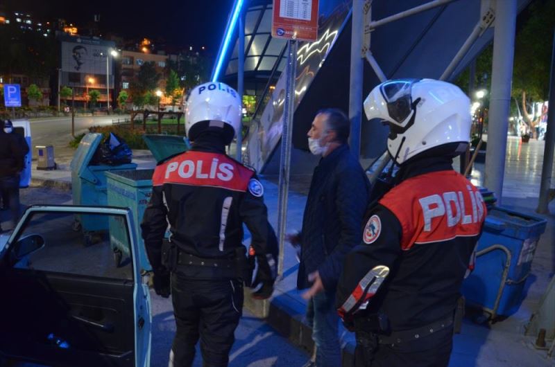 Yeni tip koronavirüsle mücadele kapsaminda 30 büyüksehir ve Zonguldak'ta 4 Mayis saat 00.00'a kadar sürecek sokaga çikma kisitlamasi öncesi kentte Atatürk Bulvari üzerinde denetim yapan polis ekibi, 46 NT 137 plakali otomobili durdurdu.