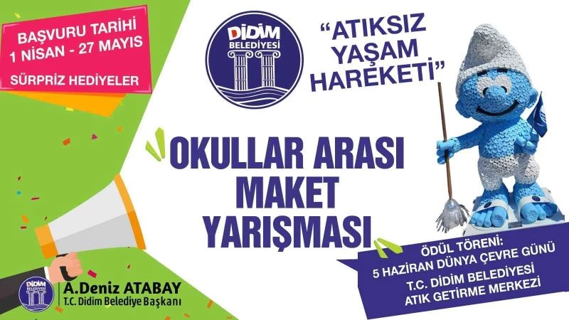 İlçe genelinde geri dönüşüm hareketi başlatan Didim Belediyesi, ilk ve ortaokul öğrencilerine yönelik Okullar Arası Maket Yarışması düzenliyor. Yarışmaya katılan öğrencileri birçok sürpriz ödül bekliyor.