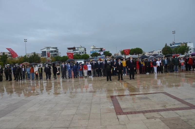 29 Ekim Cumhuriyet Bayramı’nın 97. yılı kutlamaları kapsamında Didim’de çelenk koyma töreni düzenlendi. Sağanak yağış altındaki törene katılımın az olduğu görüldü.
