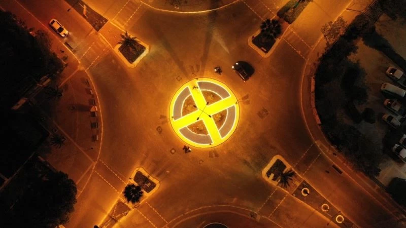Park Bahçeler Müdürlüğü ekipleri tarafından düzenlenen kavşağın yeni halinde, mavi beyaz taşlar kullanılırken, 4 adet bodur palmiye ağacı dikildi. Son olarak yapılan led aydınlatma ve çiçek ekimi ile kavşaktaki çalışmalar sona erdi.