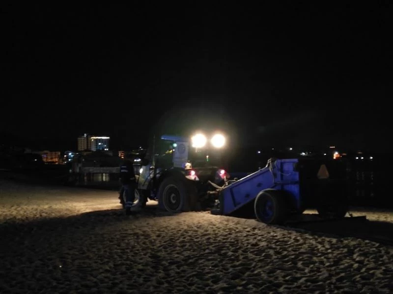 Didim Belediyesi kent genelinde başlattığı hizmet seferberliğini sürdürürken, Temizlik İşleri Müdürlüğü ekipleri gece-gündüz demeden plajlarda temizlik çalışması gerçekleştiriyor.
