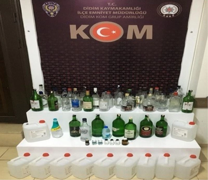 Edinilen bilgiye göre, Didim Kaçakçılık ve Organize Suçlarla Mücadele Şube Müdürlüğü Grup Amirliği ekiplerince sahte alkol ile mücadele kapsamında çalışma başlatıldı. Yapılan çalışmalara istinaden bir ikamette arama yapıldı. Yapılan aramada, 55 litre etil alkol, 13 litre değişik ebatlarda şişelere doldurulmuş el yapımı rakı, 6 adet küçük şişelerde gliserin maddesi, 1 adet küçük şişede üzüm esansı, 35 adet değişik ebatlarda boş alkollü cam şişeler ele geçirildi. S.N. isimli şahıs hakkında işlem başlatıldı.