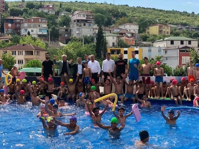 Dilovası’nda Yaz Spor Okulları kapsamında oluşturulan portatif havuzlarda, ilçede yaşayan çocuklar yüzme öğrenecek.