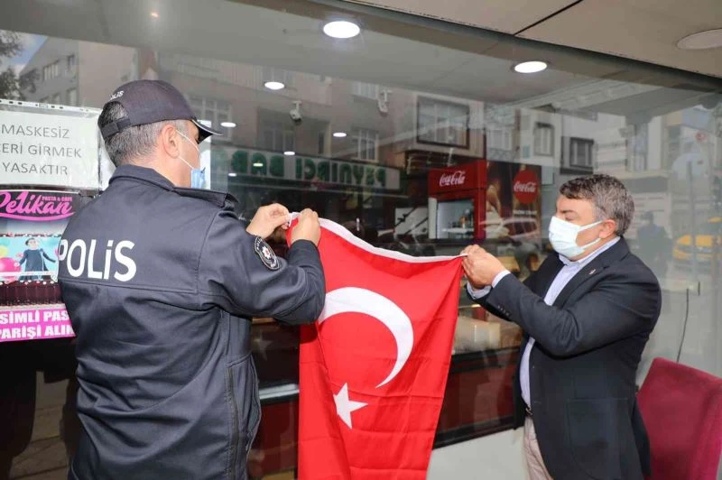 Dilovası Kaymakamı Metin Kubilay ve Dilovası Belediye Başkanı Hamza Şayir, Cumhuriyet Bayramı’nın 98. yıl dönümü dolayısıyla esnaf ve vatandaşlara Türk bayrağı hediye etti.