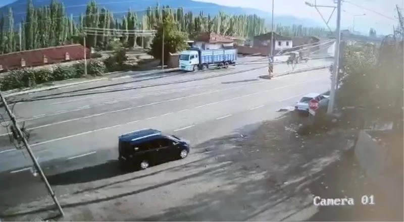 Amasya’da sürücüsünün seyir halindeyken direksiyon başında uyuduğu araç yol kenarında park halindeki bir otomobile çarptı. O anlar saniye saniye güvenlik kamerasına yansıdı.