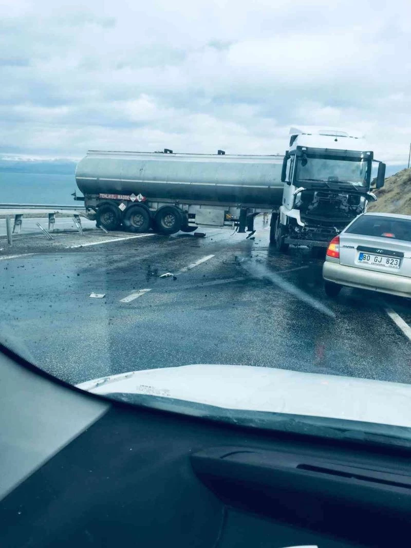 VAN – Van’da direksiyon hakimiyeti kaybedilen tır bariyerlere çarparak durdu.
