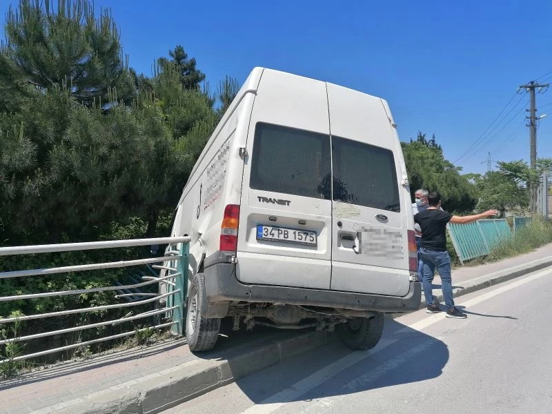 Kocaeli’nin Gebze ilçesinde direksiyon hakimiyetini kaybederek yol kenarındaki çelik bariyere çarpan minibüs sürücüsü, dereye uçmaktan son anda kurtuldu. Yaralanan sürücü, bariyere asılı kalan minibüsten itfaiye ekipleri tarafından kurtarıldı.