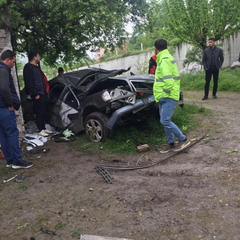 Zonguldak’ın Çaycuma ilçesinde seyir halindeyken direksiyon hakimiyetini kaybeden sürücü orta refüjden karşı şeride geçip bir evin bahçesine uçtu. Önce ağaçlara sonra duvara çarpan sürücü hayatını kaybetti.