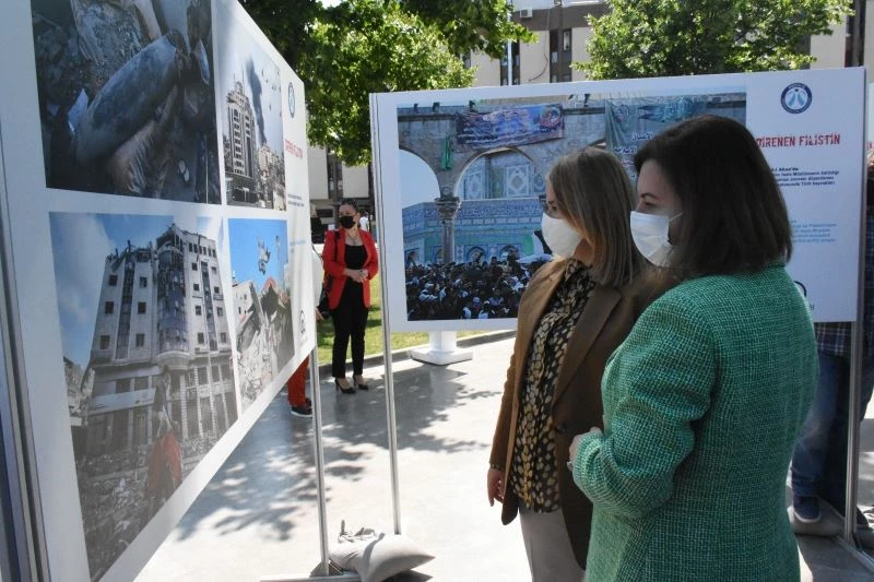 Zağnos Paşa Camii meydanında açılan Direnen Filistin fotoğraf sergisinde, İsrail’de Filistin halkına karşı yapılan zulüm anlatılarak farkındalık oluşturuldu.