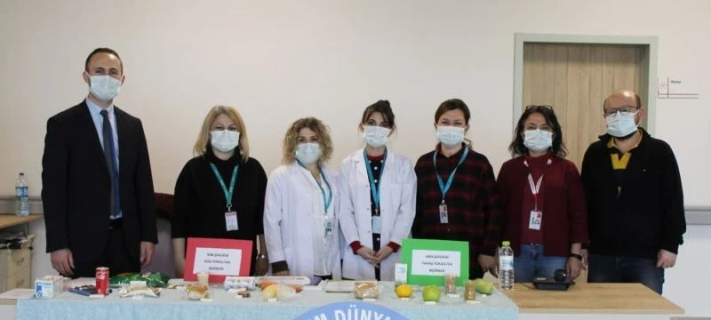 Poliklinik binası zemin katında diyabet hastalığına dikkat çekmek için açılan stantta, masaların üzerine kan şekerini hızlı ve yavaş yükselten besinler koyularak diyabet konusunda hasta ve hasta yakınlarında farkındalık oluşturulmaya çalışıldı. Bilecik İl Sağlık Müdürü Ferhat Damkacı, diyabet hastalığını tanımlayan bir açıklamada bulunarak, “Diyabet, vücudumuzda pankreas adlı salgı bezinin yeterli miktarda insülin hormonu üretmemesi ya da ürettiği insülin hormonunun etkili bir şekilde kullanılmaması durumunda gelişen bir hastalıktır. Kan şekeri düzeylerinin dengeli bir şekilde seyredilememesiyle netice verir. Diyabet hastalığı, bireylerde normalden fazla yemek yeme ve doymama hissi, sık idrara çıkma, ağızda kuruluk, tatlılık hissi ve buna bağlı olarak aşırı su içme isteği olarak belirtiler gösterebilir. Diyabet hastalığı olan bireylerin doktorun uygun gördüğü tıbbi tedavi ve diyetisyen kontrolünde bir beslenme programı ile tedavilerini sürdürmeleri gerekmektedir” ifadelerine yer verdi.
