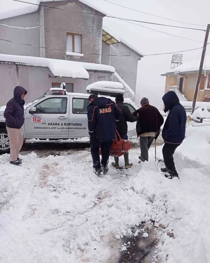 Zonguldak’ta yoğun kar yağışı nedeniyle köyde mahsur kalan 75 yaşındaki diyaliz hastası Fahrettin Yılmaz imdadına AFAD ekipleri yetişti.