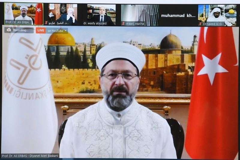 Diyanet İşleri Başkanlığından yapılan açıklamaya göre, Diyanet İşleri Başkanı Ali Erbaş, Yurtdışı Filistinli Alimler Derneği tarafından online olarak organize edilen, "Kudüs ve Mescid-i Aksa Dayanışma Buluşması"nda konuştu.