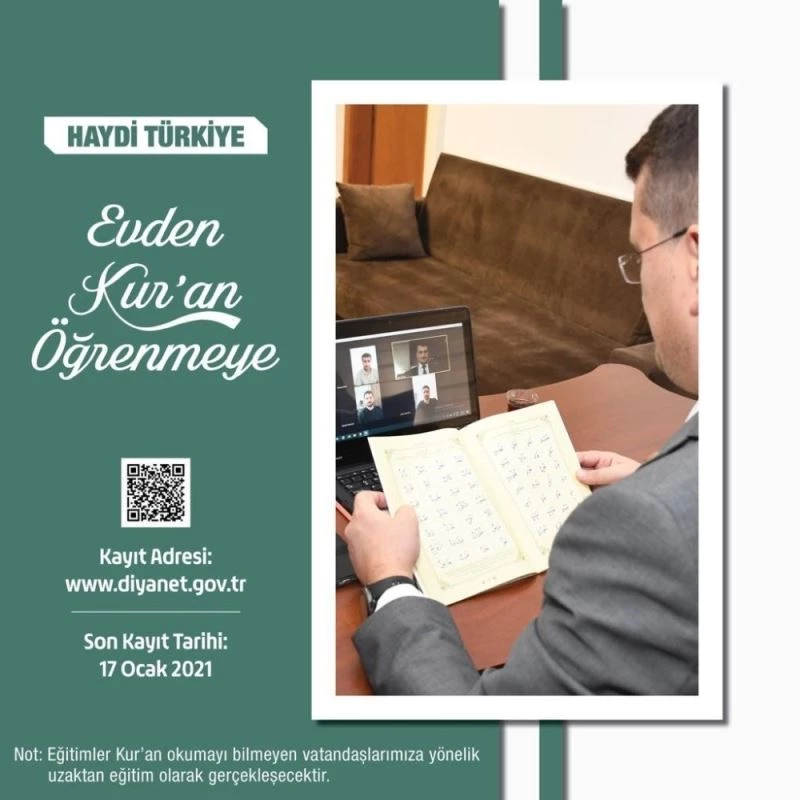 Diyanet İşleri Başkanlığı, “Haydi Türkiye Evden Kur’an Öğrenmeye” sloganıyla uzaktan eğitimle gerçekleştirilecek Kur’an-ı Kerim Öğretim Programı hazırladı.