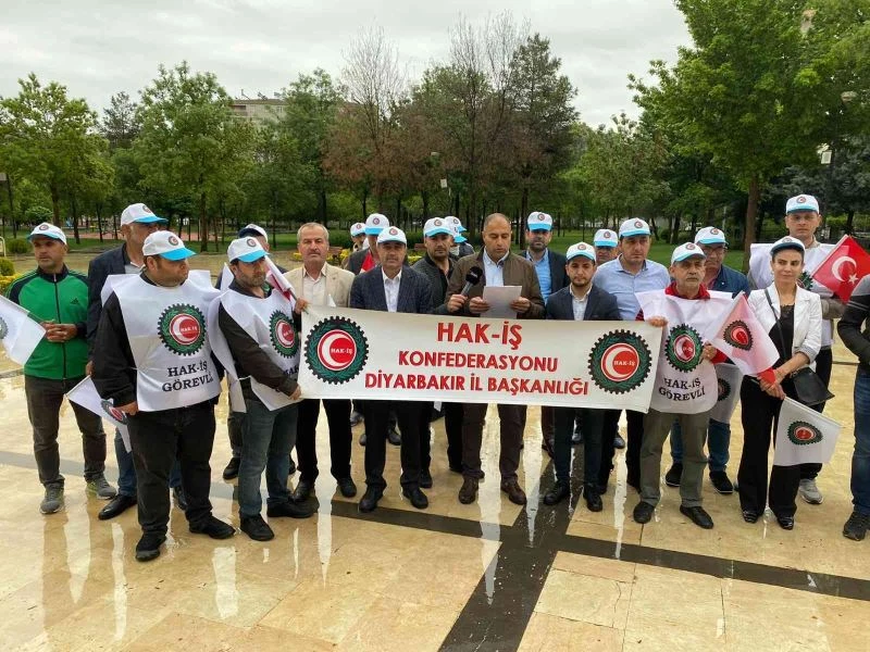 1 Mayıs Emek ve Dayanışma Günü nedeniyle basın açıklaması yapan Hak İşçi Sendikaları Konfederasyonu (HAK-İŞ) Diyarbakır İl Başkanı Ahmet Dinç, geçici işçilerin daimi kadroya geçirilmesi gerektiğini belirterek, “Toplu iş sözleşmeleri ile elde edilen hak ve kazanımların enflasyon karşısında ezilmemesini talep ediyoruz” dedi.