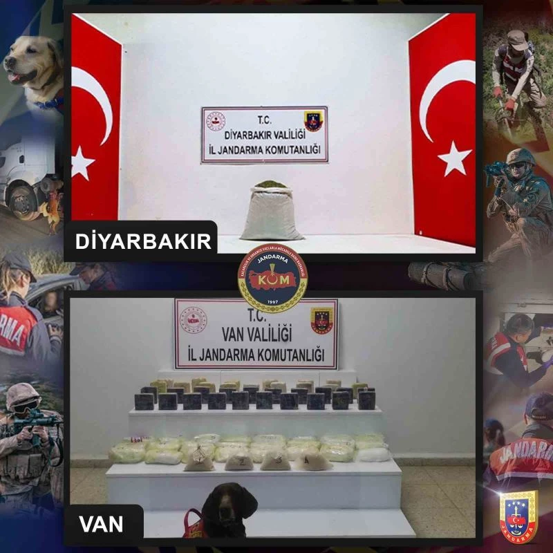 Jandarma Genel Komutanlığı, Diyarbakır ve Van’da toplam 47 kilo uyuştu madde ele geçirildiğini, 2 şüphelinin yakalandığını bildirdi.