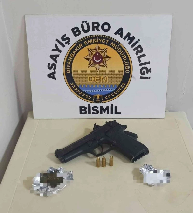 Alınan bilgilere göre, Bismil İlçe Emniyet Müdürlüğü ekiplerinin yaptığı huzur uygulamasında, aralarında hakkında adli mercilerce yakalama kararı bulunan 8 şahısla birlikte 11 şüpheli yakalandı. Uygulamada 1 adet ruhsatsız tabanca, 2 parça halinde 3.01 gram toz esrar ve 1 parça halinde 1.88 gram metamfetamin maddesi ele geçirildi.