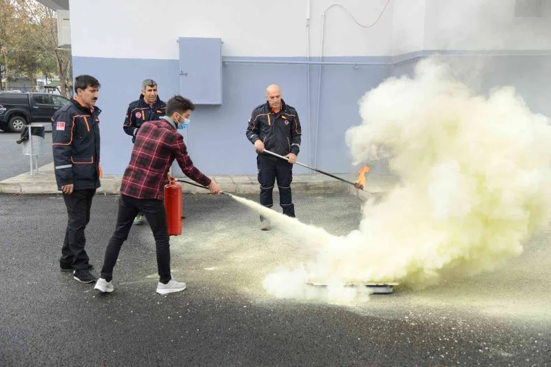 Daha sonra okulun bahçesinde AFAD ekiplerince yapılan yangın tatbikatında; yangında yapılması gerekenler, yangın söndürme metotları ve yangında kullanılacak malzemeler anlatıldı. Tatbikatta, ekiplerce yangın söndürülme teknikleri uygulamalı olarak gösterildi, ardından benzin yardımıyla yakılan ateş, öğrenciler tarafından AFAD personelinin kontrolünde söndürüldü. Dağcılık Arama Kurtarma (DAK) ekibi tarafından yüksek yerlerden kazazede kurtarma eğitiminin anlatıldığı programda arama kurtarmada kullanılan K9 köpeği tanıtıldı.
