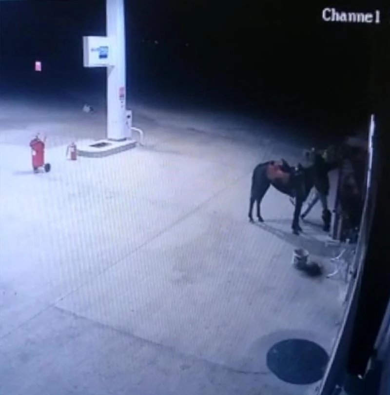Alınan bilgilere göre, geçtiğimiz günlerde Diyarbakır’ın Kocaköy ilçesinde bir vatandaş ana yol üzerinde bulunan akaryakıt istasyonuna, at ile giriş yaptı. Akşam saatlerinde gelen ismi öğrenilmeyen vatandaş, atıyla çevreye baktıktan sonra inerek dışarıda bulunan içecek dolabını açmak için zorladı.