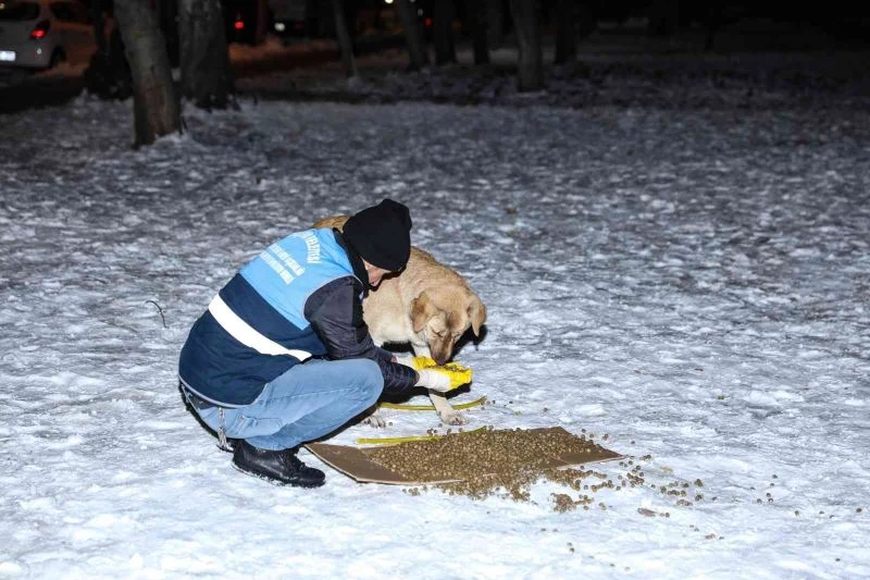 Sağlık İşleri Daire Başkanlığına bağlı ekipler, geceleri hava sıcaklığının eksi 15 dere kadar düştüğü kentte sokakta yaşan hayvanları yalnız bırakmadı.