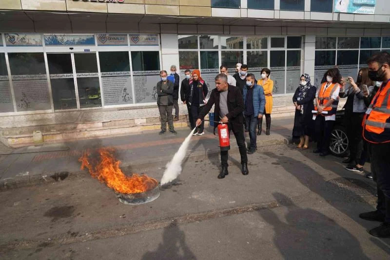 Diyarbakır Büyükşehir Belediyesi itfaiye ekipleri, özel bir hastanede yangın ve kurtarma tatbikatı yaptı.
