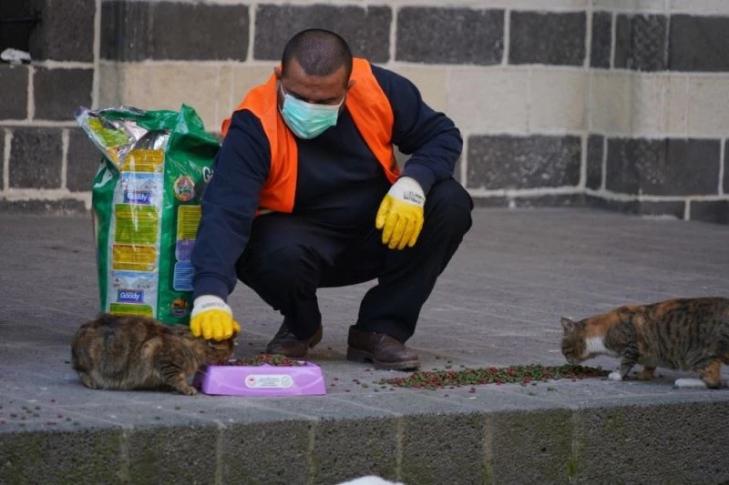 Diyarbakır Büyükşehir Belediyesi, korona virüs (Covid-19) önlemleri kapsamında tüm Türkiye’de uygulanan 2 günlük sokağa çıkma kısıtlamasında can dostları yalnız bırakmayarak önceden belirlenen noktalara mama bıraktı.